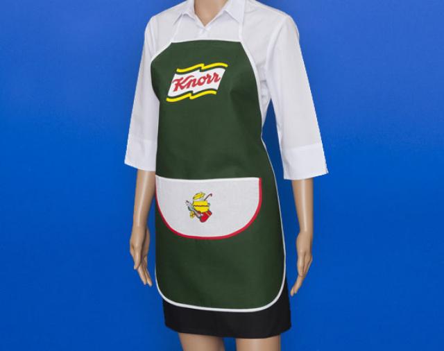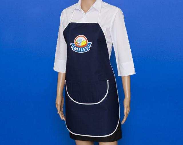 Small apron is standard made of the 100% cotton fabric in the logotype colour with the trimming in the logotype colour.